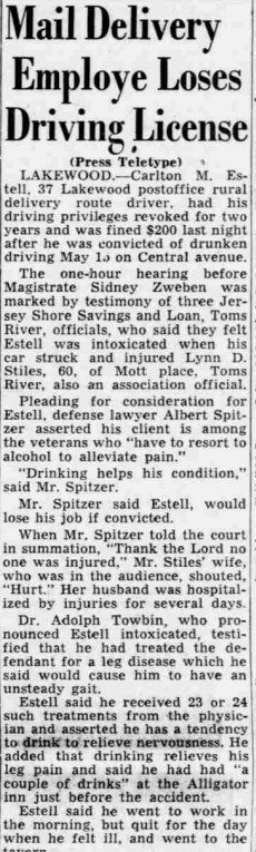 Carlton Estell loses license, 1950